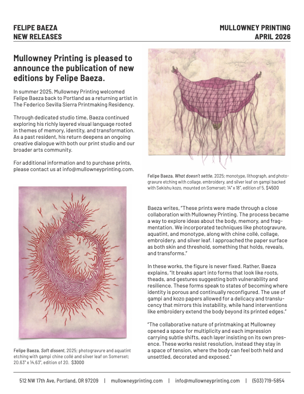 Mullowney Printing Company is pleased to share new releases. To learn more about each artist and their work, you can download any current and past release announcement (see below). To view additional images of available prints, please visit our artist pages. For other inquiries, please email info@mullowneyprinting.com.